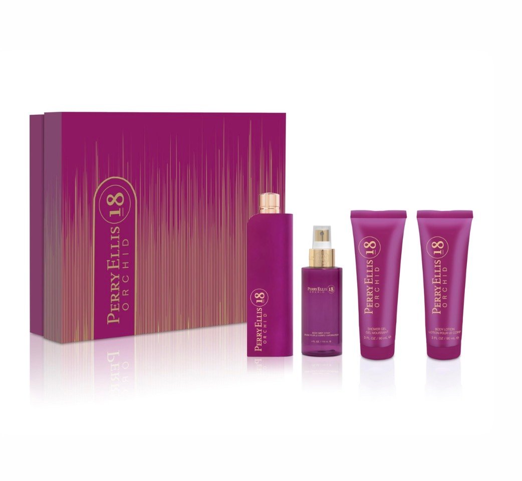 Perry Ellis Fragancias Perry Ellis 18 orquídeas para mujer – Set de regalo de 4 piezas